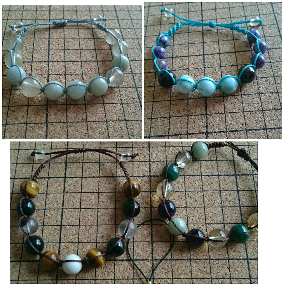 こんにちは(^^) お知らせ📢です。 9月10日(日)ケイズマートさんで勾玉販売します。 ご用の方は連絡お待ちしております🙇 9月8日(金)・9日(土)延岡 9月19日・20日 大阪✈です。 大阪は仕入で行きますので、気になる商品などありましたら、ピッタリの物を見つけてきますので、ご連絡お待ちしております。 写真は、ブレスレットです。 今まで透明のゴムで繋いでいましたが、ご要望があれば、マクラメ編みで作ることも出来ますよ🎵(後日お渡し) ※ゴムは切れそうで怖いという方 ※他の人と同じじゃつまらないという方等々 透明のゴムは、 ※石の綺麗さを引き立てる ※手を洗う時など、濡れても気にならない等々 ✨ 今まで持っていたブレスレットをリフォームしたら、また違った感じに仕上がりますよ❤