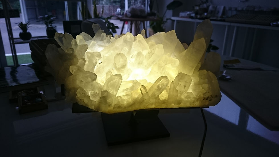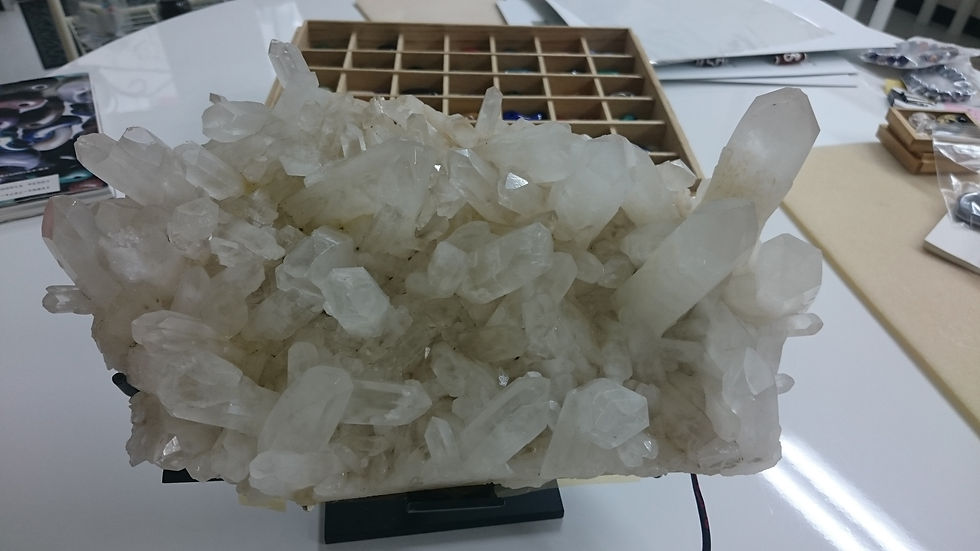 こんばんは(^^) 商品のご案内です✨ ランプ台付水晶のクラスター(約30㎝×17㎝) 母艦(石の台の部分)が分厚くないので、光を通してくれます。 クラスターとして、インテリアとしていい感じですよ❤ 3枚目の写真は、チベットに昔から伝わる御守り「天珠」です。 身に付ける事で、幸運・健康運・財運・金運・愛情運に良いと言われています。 また、紋様は沢山あり、その一つ一つに意味があります。 例えば 七眼天珠 薬師七仏を表し、一切の運勢、功名、事業、財富、健康、長寿、婚姻を司ると云われている。 21種類の天珠を取り扱っていますので、是非見にきて下さいね。 ブレスレットに☝ストラップに☝ネックレスにしても素敵ですよ❤